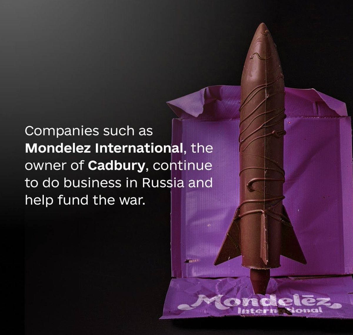 Companies such as Mondelez International, the owner of Cadbury, continue to do business in Russia and help fund the war.