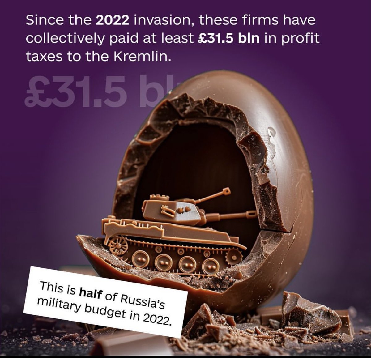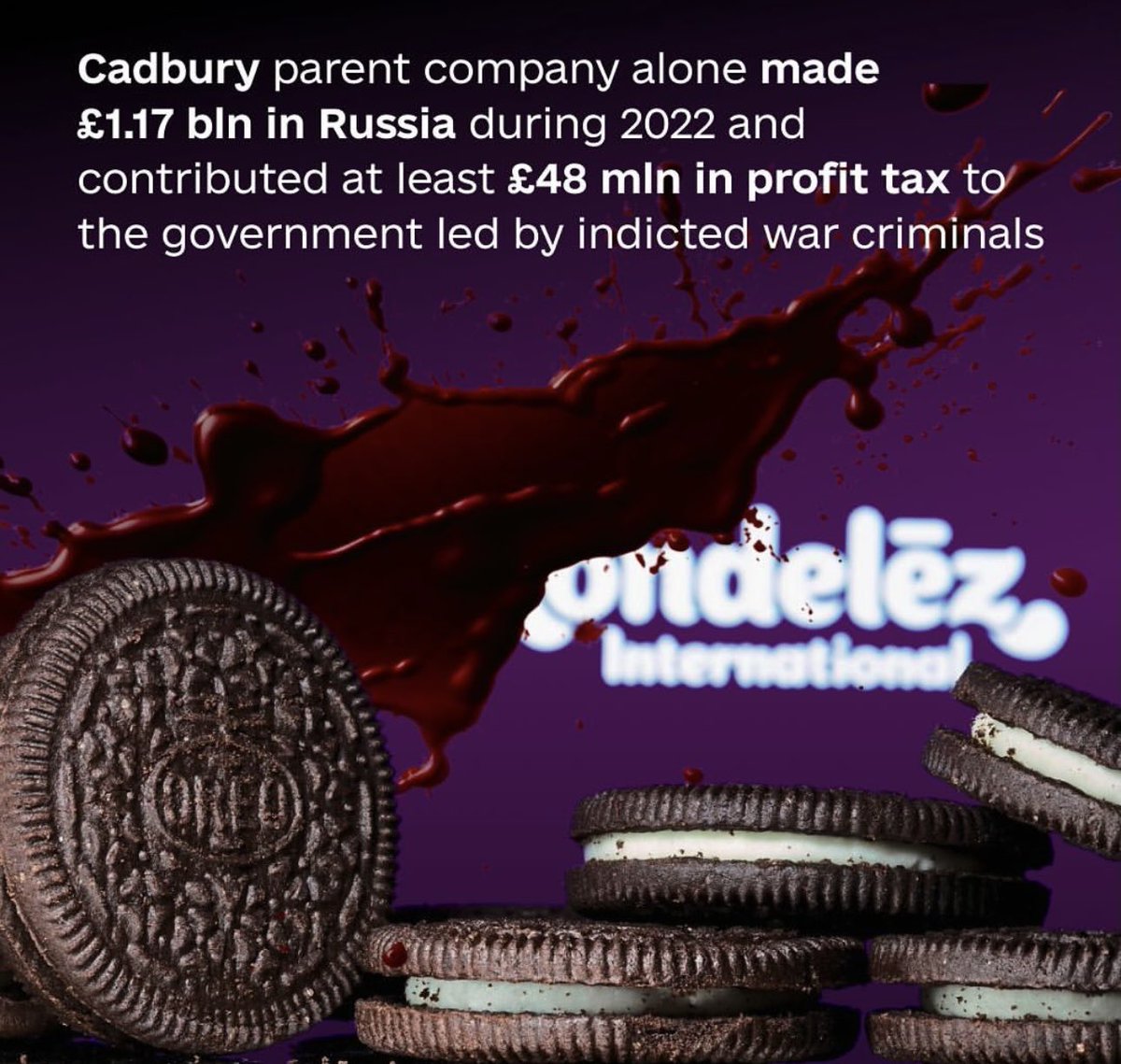 Cadbury parent company alone made ยฃ1.17 Bln in Russia during 2022 and contributed at least ยฃ48 ml in profit tax to the government led by indicted war criminals.