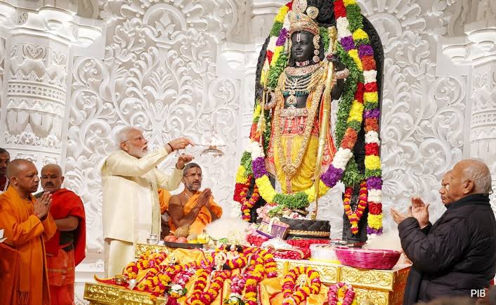 • PM Narendra Modi inaugurated the Ram Mandir in Ayodhya during the Prana Pratishtha ceremony.