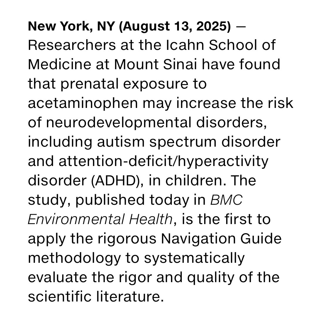 But universities like Harvard, Johns Hopkins, and Mount Sinai — none of them aligned with Trump or RFK — have published research showing the risks.