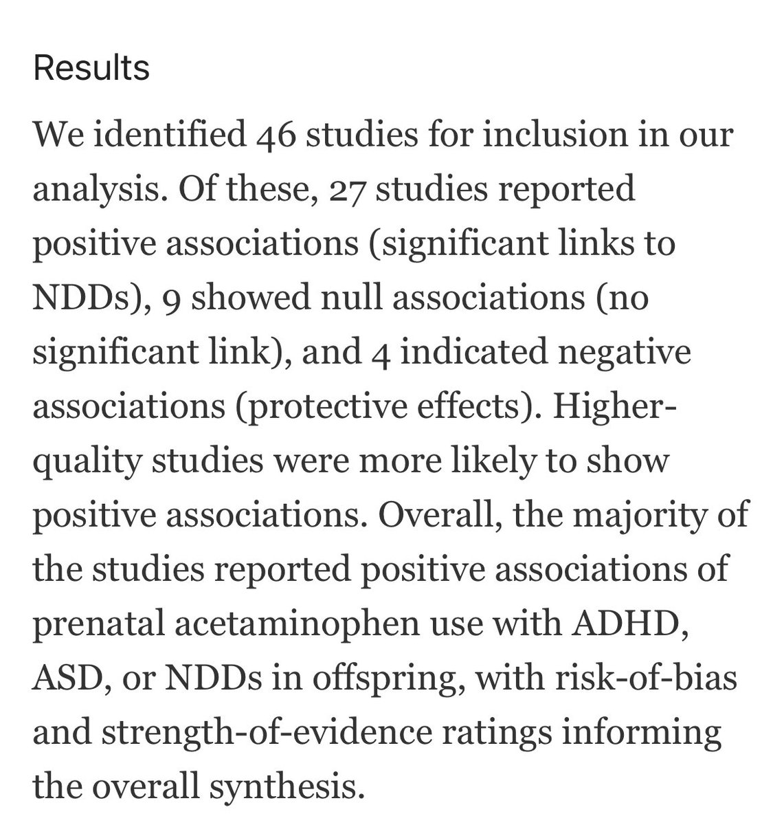 They found consistent evidence that prenatal acetaminophen exposure is associated with a higher risk of autism and ADHD.