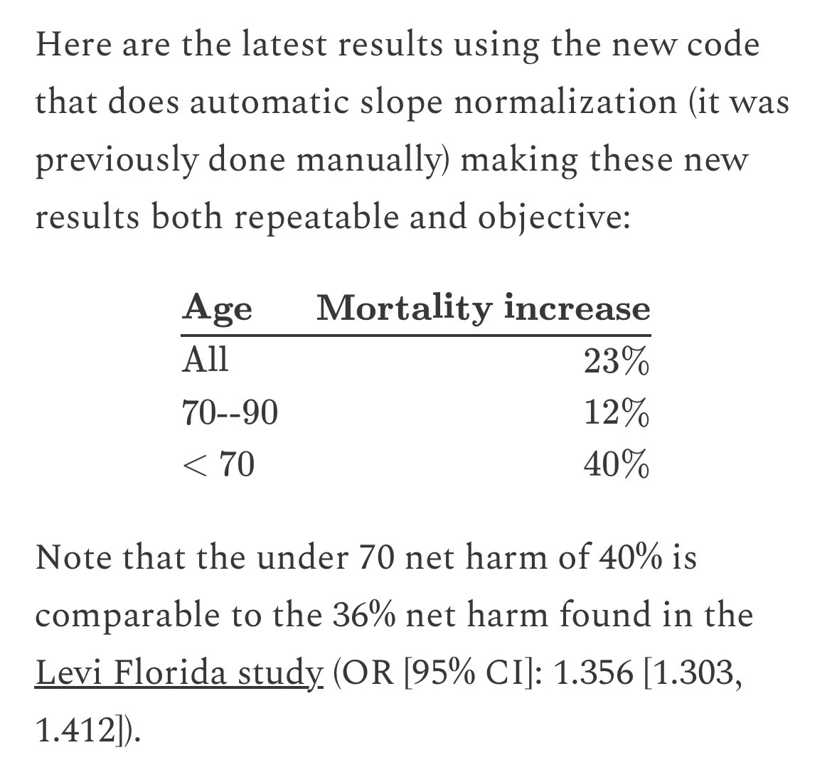 He claims mortality was more than 20% higher for the vaccinated overall, nearly 40% higher for those under 70, and around 12% higher for ages 70–90.