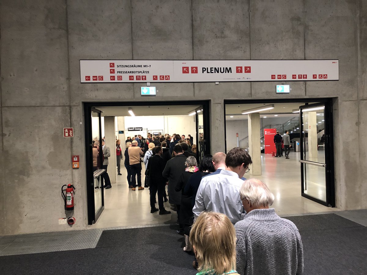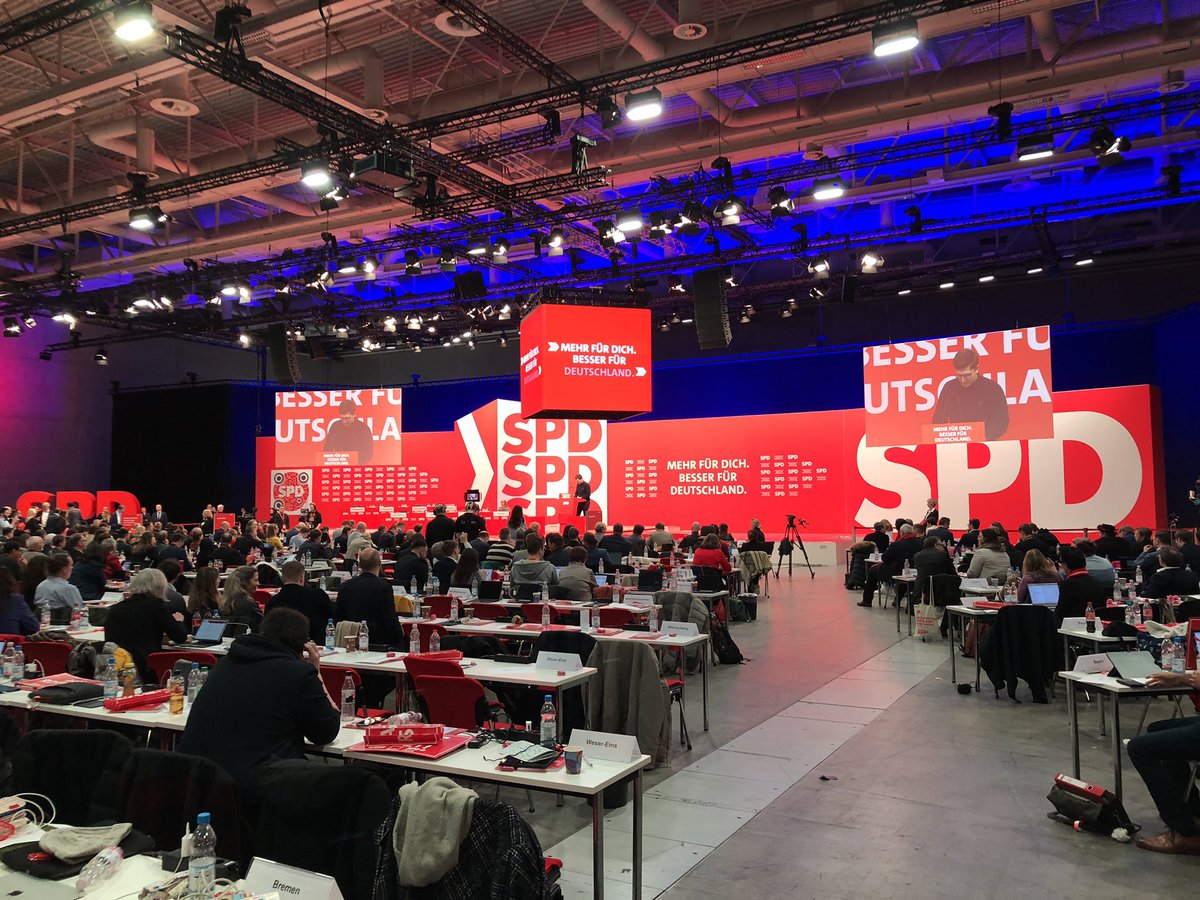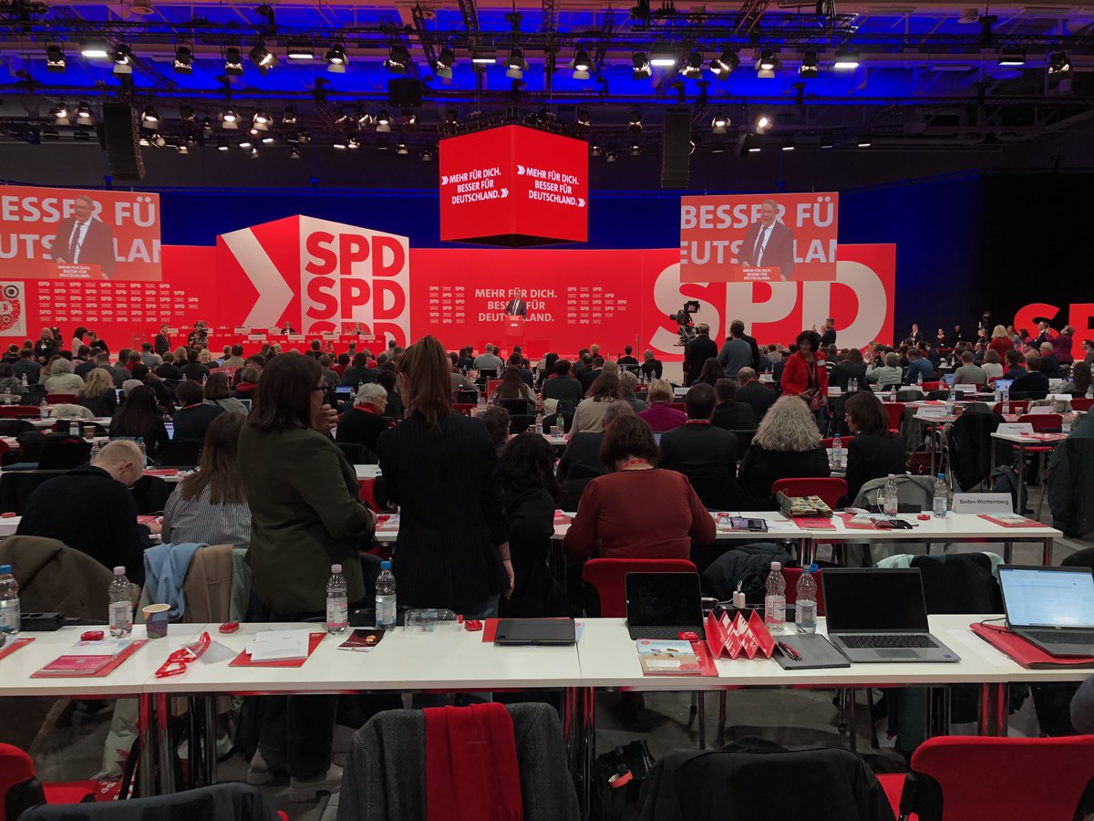 Ik leer nu dat Scholz uit Hamburg komt en daar heel populair is/was. Ik begrijp nu waarom de afgevaardigden van Hamburg op de beste plek in de zaal zitten (rij twee, in het midden).