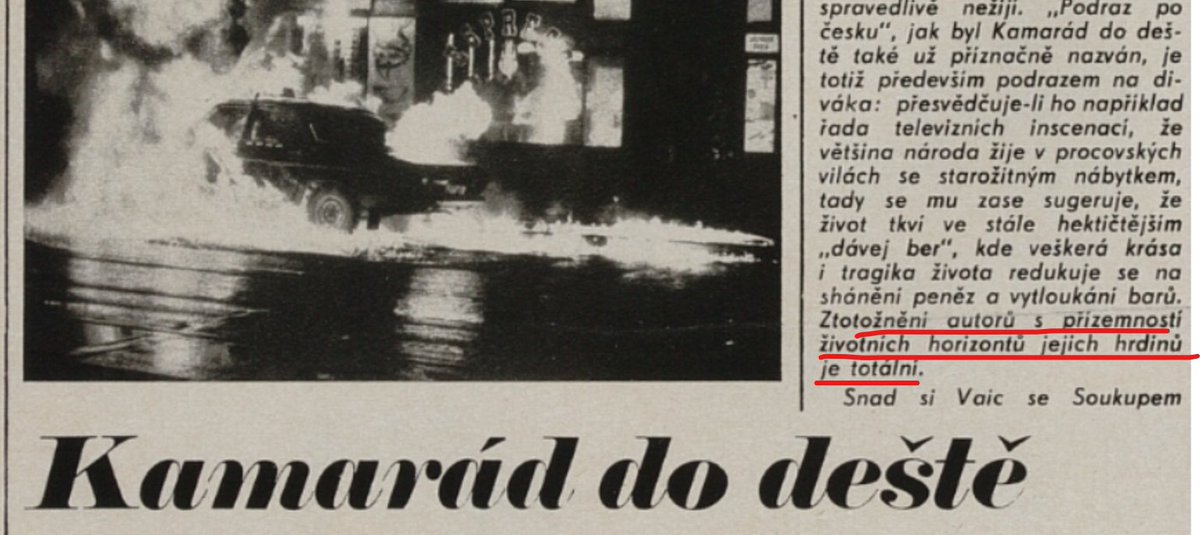 "Ztotožnění autorů s přízemností životních horizontů jejich hrdinů je totální," rozčiluje se Lukeš v měsíčníku Kino .