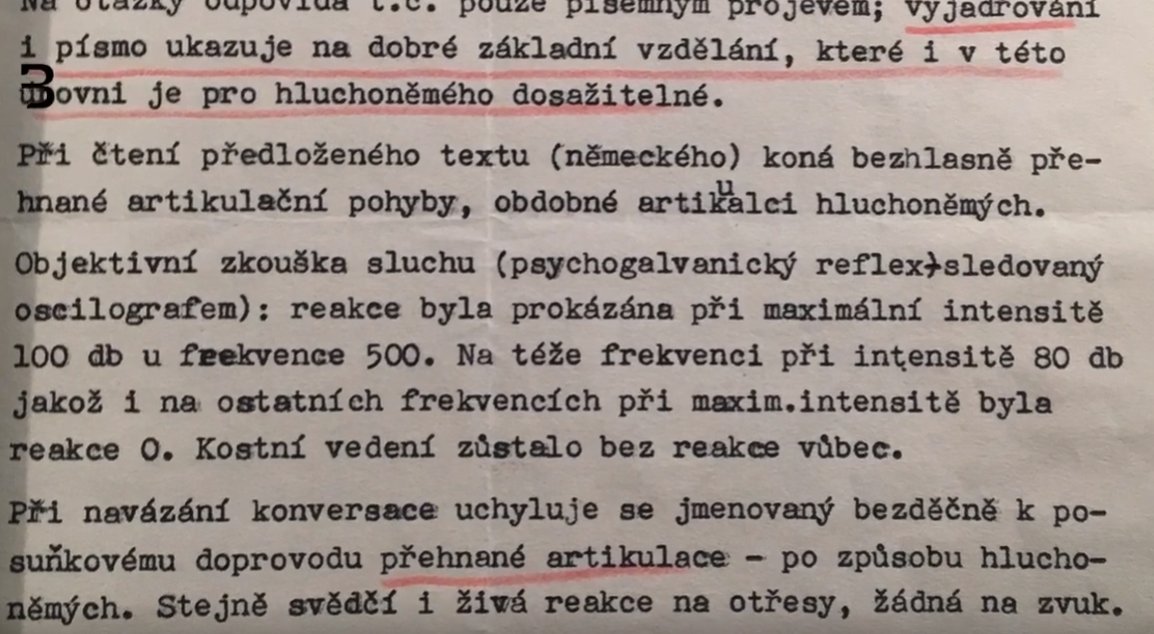 Všichni lékaři uváděli, že dlouhodobě takto simulovat je skoro nemožné. Zbývá MUDr. Šrom, eso pražského úst pro hluchoněmé zkoumá10/n