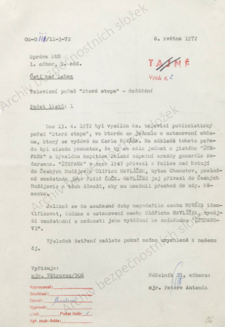 Pokud je někdo magor, co nemá co na práci a rodinu co se jí má krom rozpočtu MČ věnovat + má badatelský přístup do ABS, tak v dokumentu "potkává" i další lidi, co potkal tam, kam se podívat jdeš - do hlášení, co na něj podávali "kamarádi a kolegové" z řad StB nebo tam na tebe hukne šajba, co znáš z doby kdy Marťan vojákoval, byl ozačován za vzor celému praporu lidmi, co na něj souběžně psali hlášení.