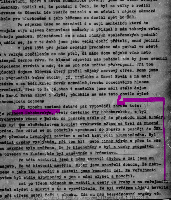 jejich archivy k Banderovcům a různým komandům v táborech, jsou snad s uvolňováním poslední, titěrnou nadějí. Nebyl špionem. Kým a čím byl už se s největší pravděpodobností nikdy nedozvíme. Spíše válečným zločincem než obětí války. Ale tou byl vlastně také. Do učebnic mediků vejde jako nejdokonalejší simulant hluchoněmoty, co nějak dokázal nereagovat i na nečekané lekání, odolal chemii, druhý se "srostlým jazykem a patrem" co je srostlé neměl, znám také mezi znalci není.