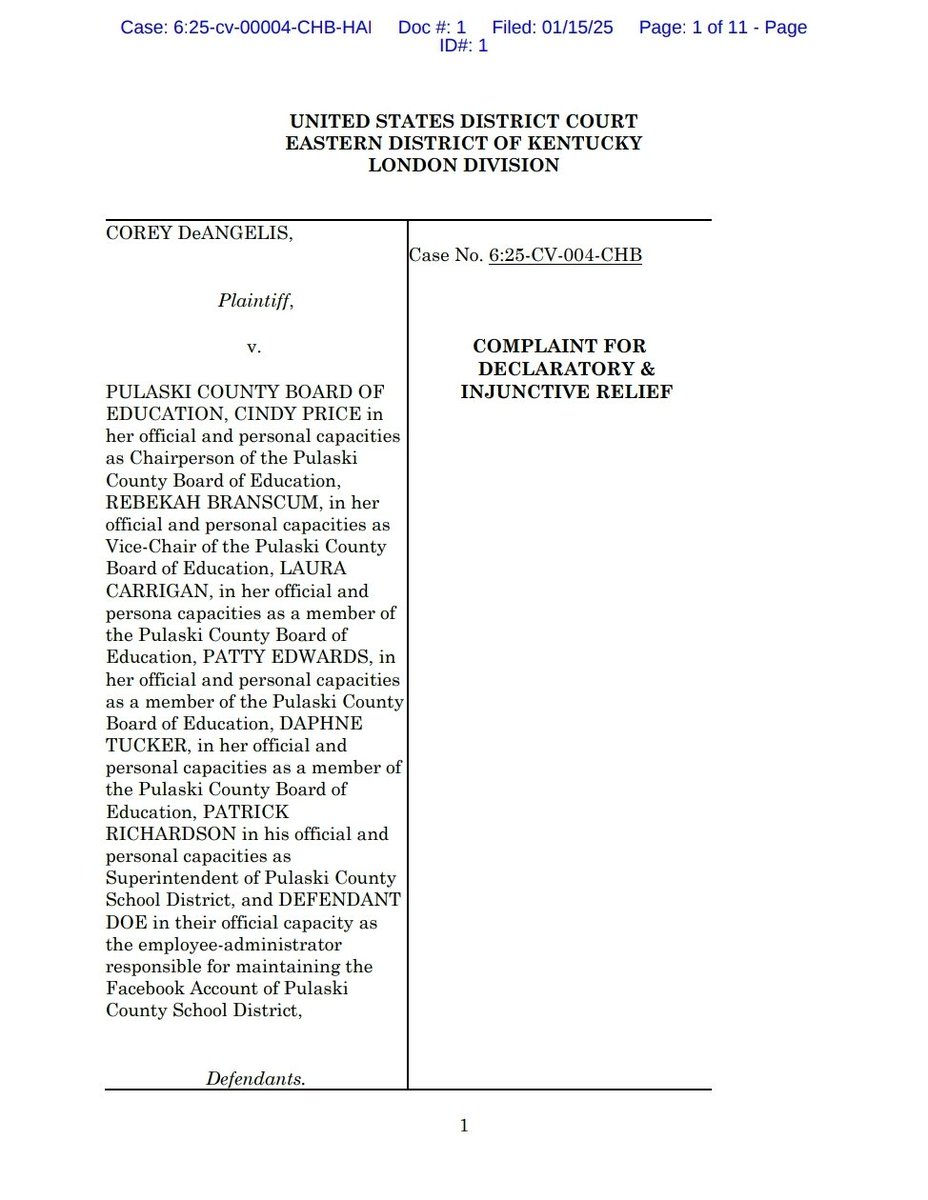 BREAKING: I just sued a Kentucky school district in federal court for violating my 1st Amendment rights.