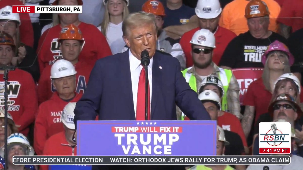 I'm going to put together a thread covering Trump's rally in Pittsburgh -- his third of four today. Follow along for clips and commentary.