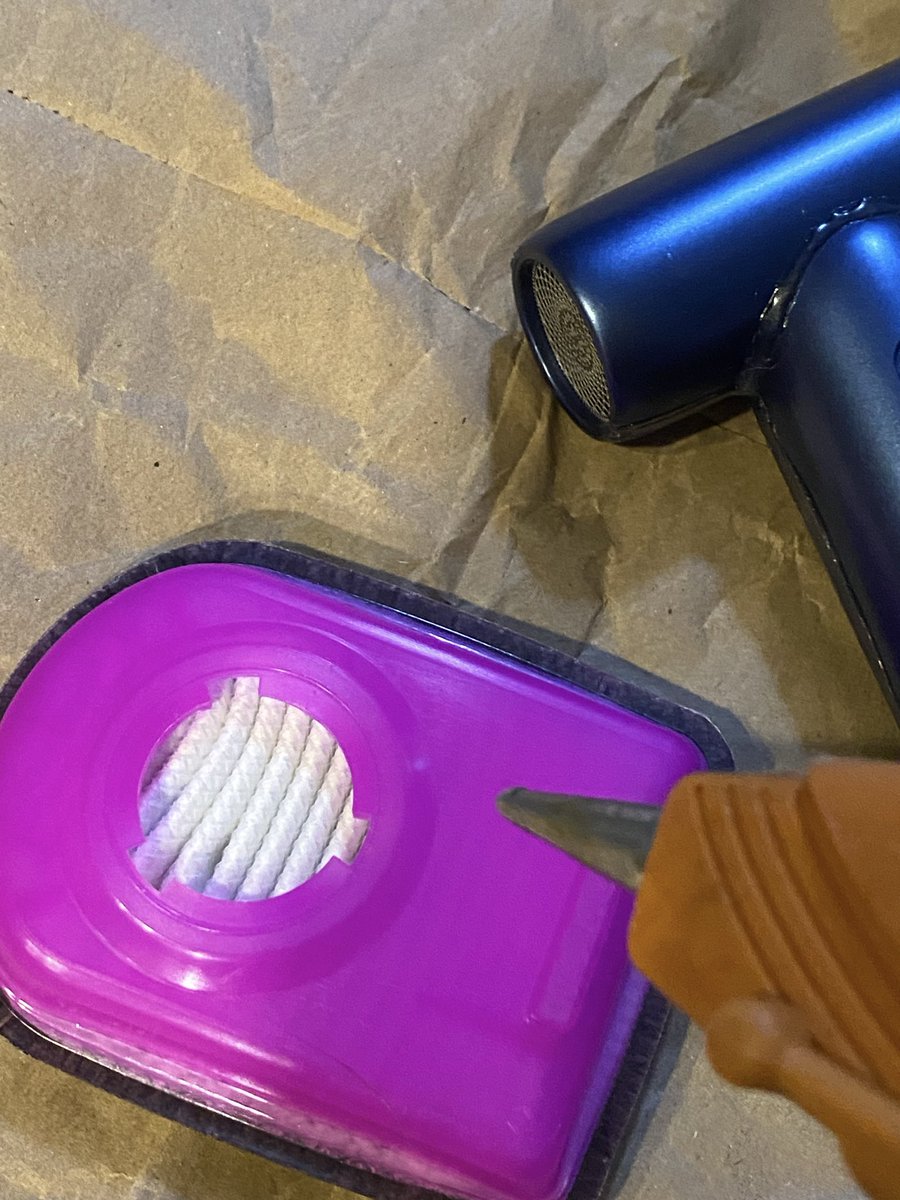Step 4, cut the foam to remove the plastic ring on the end not inside the hood