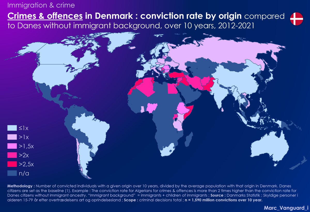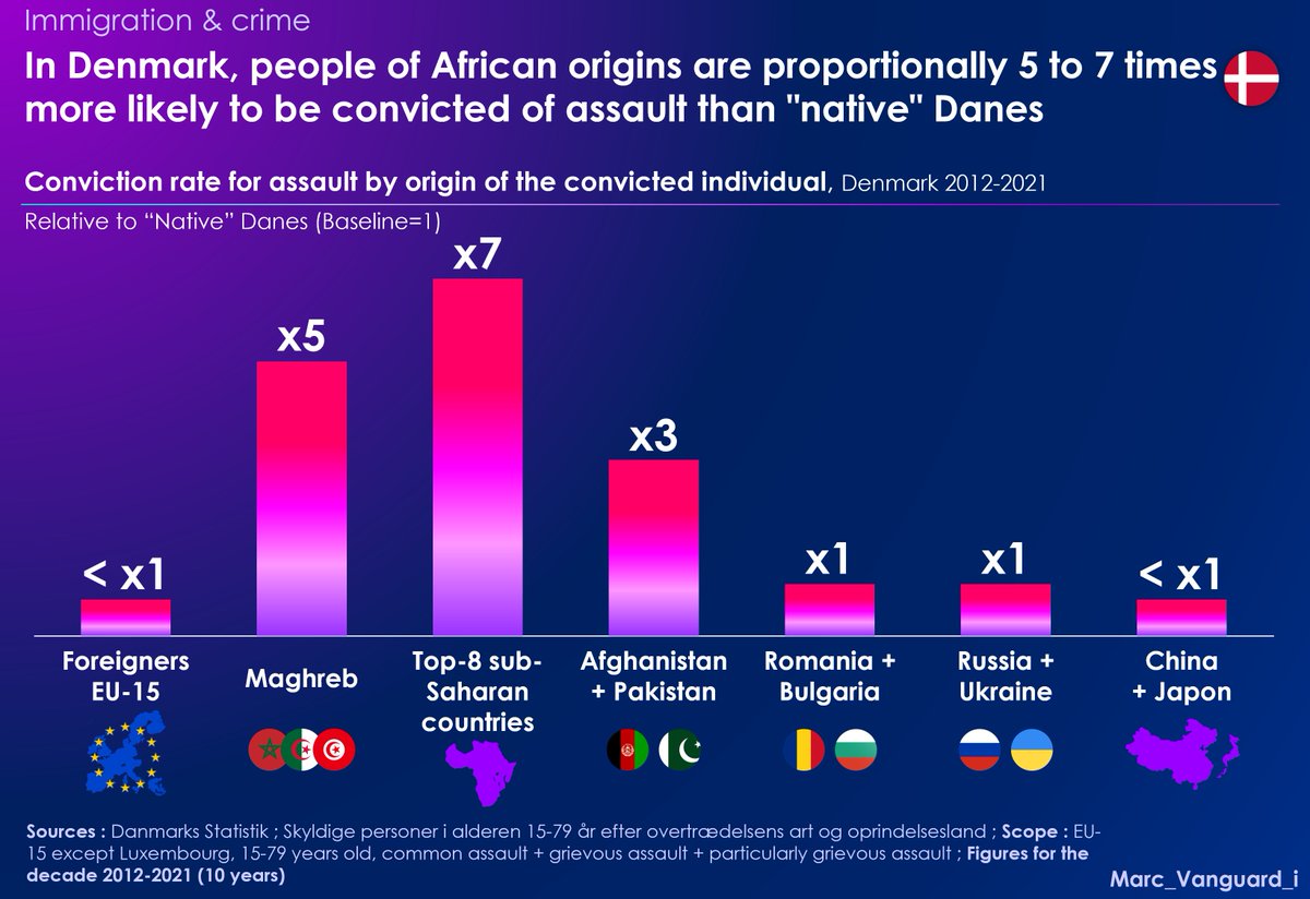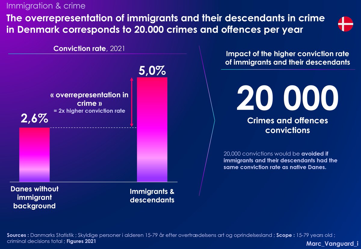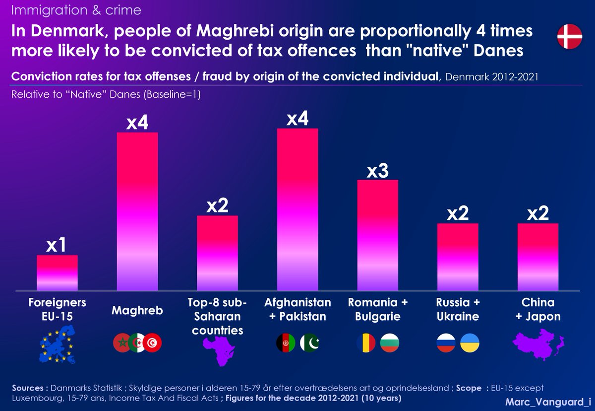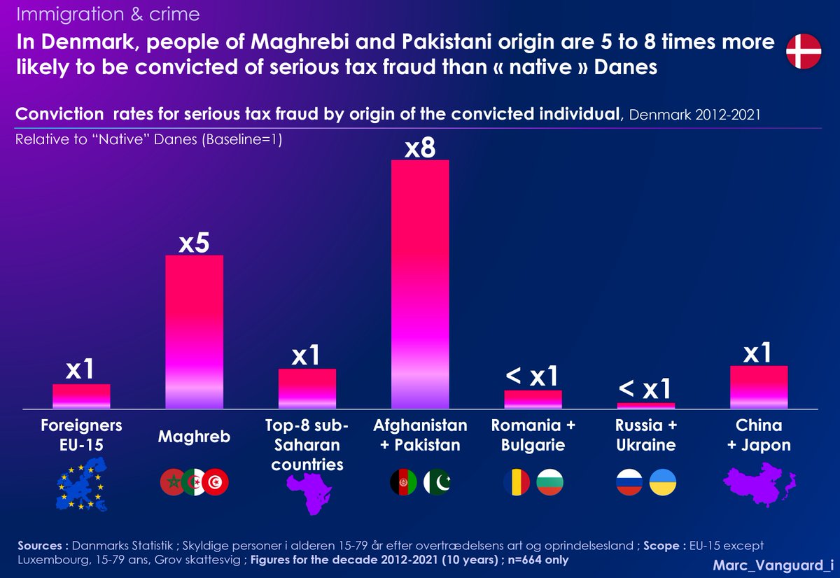 π They reveal that Maghrebi and Pakistani individuals are particularly overrepresented in this type of offense, with conviction rates 4 times higher than those of "native" Danes β¬οΈ
