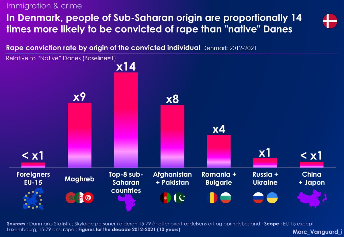 7β£ The conviction rate for individuals of Sub-Saharan African origin for rape is a staggering FOURTEEN TIMES higher than that of "native" Danes.
