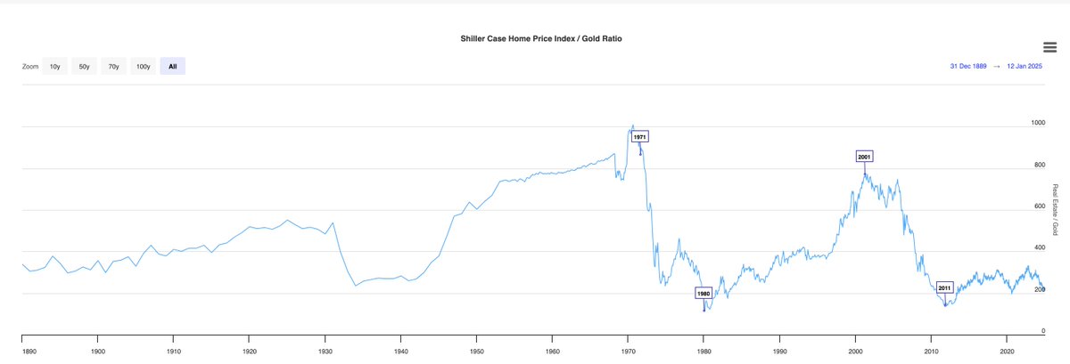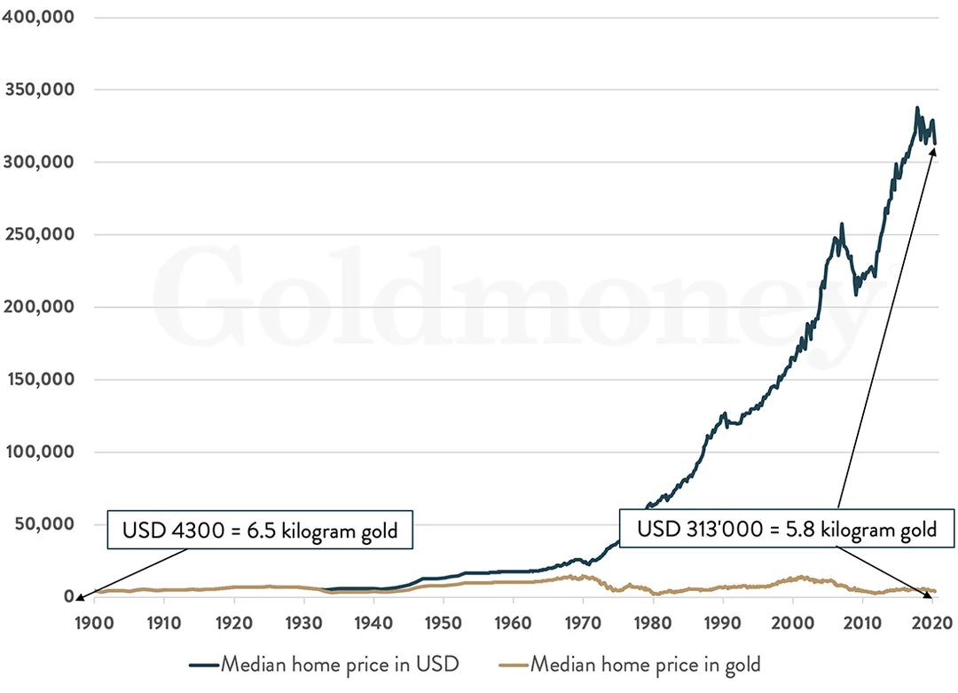 The only time housing increased priced in gold is when gold was artificially suppressed as inflation raged from the mid-1930s to gold being legal to purchase again in the 70s