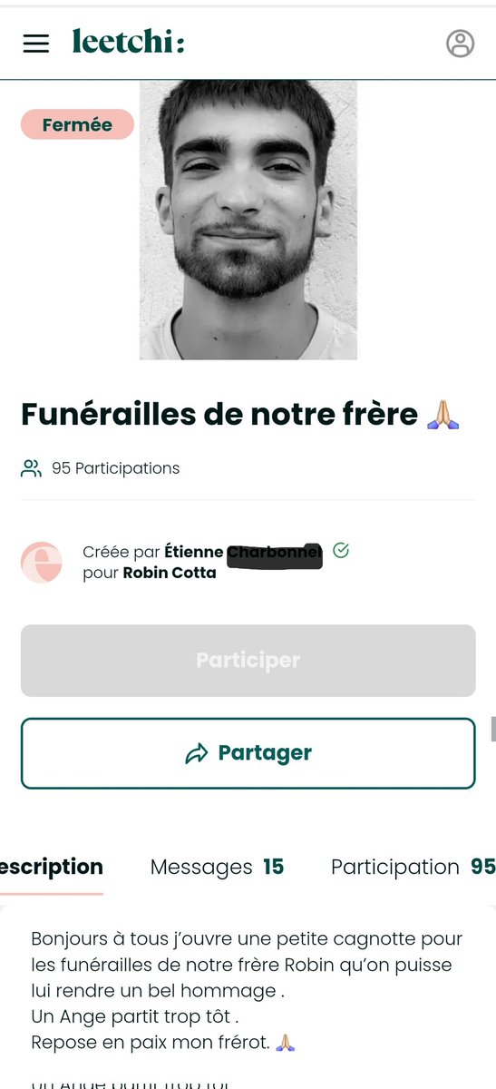 Les funérailles se firent si discrètes que des proches lancèrent une cagnotte pour en financer le coût auprès de ceux l'ayant connu. Des messages d'anciennes maîtresses d'école, parents d'élèves ou camarades de classe de ses Alpes provencales, qui le considèrent comme un "frère".