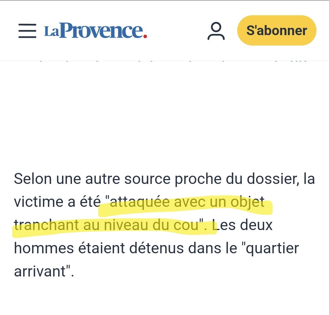 A l'époque, le journal @laprovence lie le meurtre aux gangs, les Baumettes parlent d'un "incident", une source judiciaire écrit "attaqué au niveau du cou" plutôt qu'égorgé ou décapité, le parquet de Marseille de Nicolas Bessone occulte les motifs du crime. laprovence.com/article/france…
