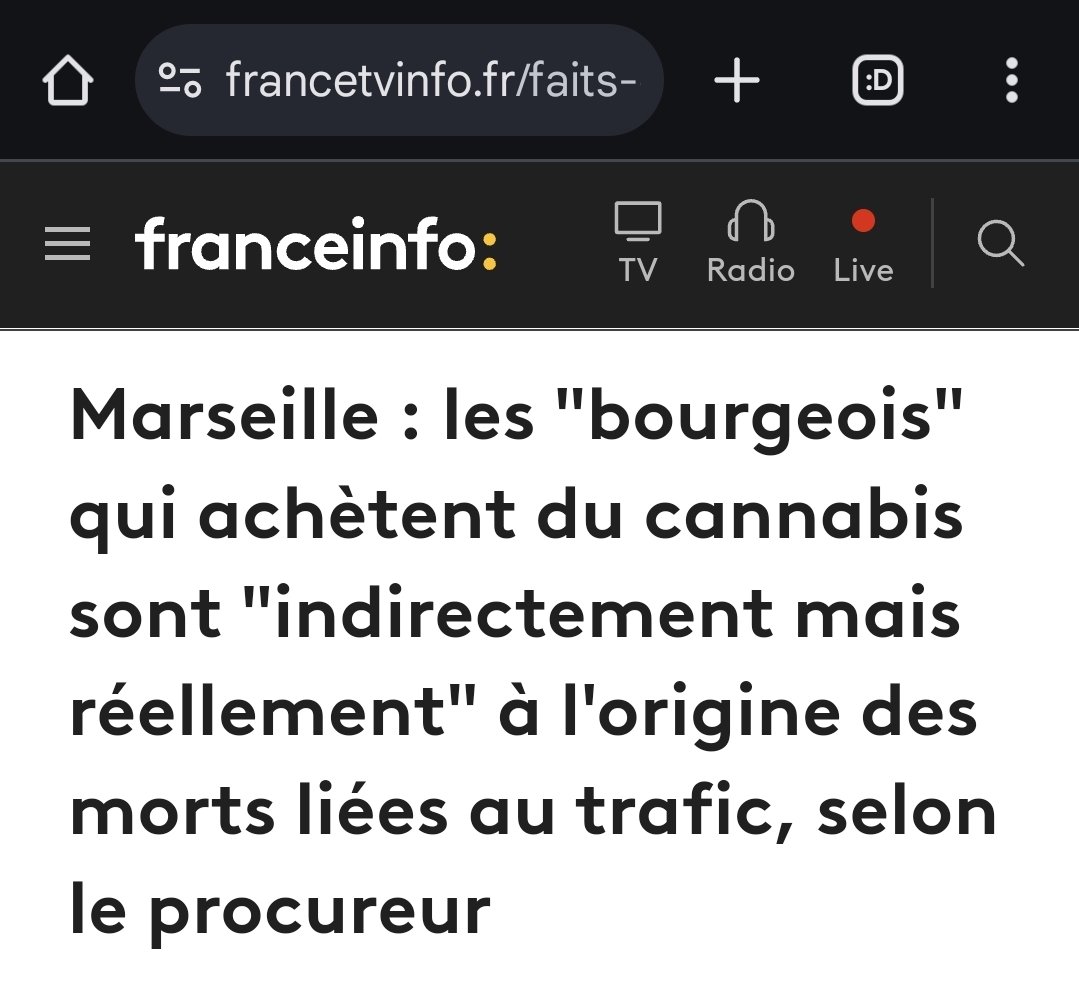 La politique du procureur de Marseille Nicolas Bessone, qui dépeint les petits trafiquants comme victimes et les consommateurs comme meurtriers⤵️, est cohérent avec l'envoi immédiat en prison d'un jeune au casier vierge pour fausse ordonnance de codéine, le "bourgeois" Robin.