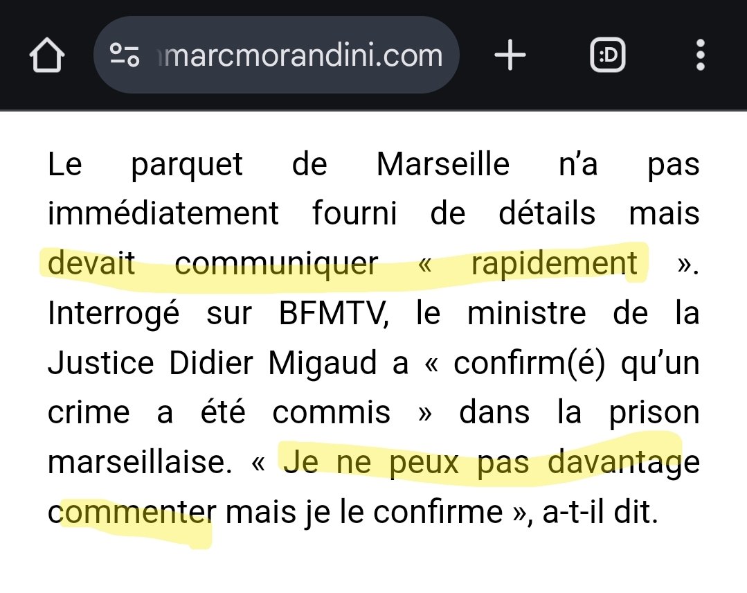 A l'époque, le parquet de Marseille de Nicolas Bessone promet de communiquer rapidement👇,ce qu'il ne fera jamais. Le ministre de la Justice d'alors, Didier Migaud, refuse de commenter ce meurtre alors qu'il a justement visité les #Baumettes en novembre.