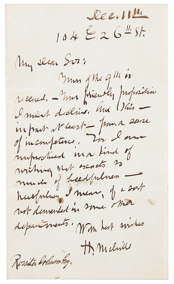17. Herman Melville declines to write encyclopedia entries: "I am unpracticed in a kind of writing that exacts so much heedfulness" (December 11, 1887)