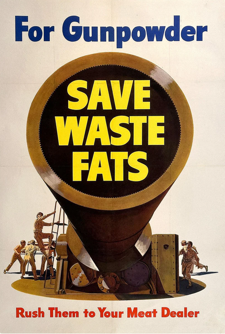 А домогосподаркам було наказано зберігати залишковий жир після приготування їжі та повертати його назад в магазини. Адже один фунт тваринного жиру містить достатньо гліцерину для того, щоб виробити динаміт у кількості достатній для підриву моста.