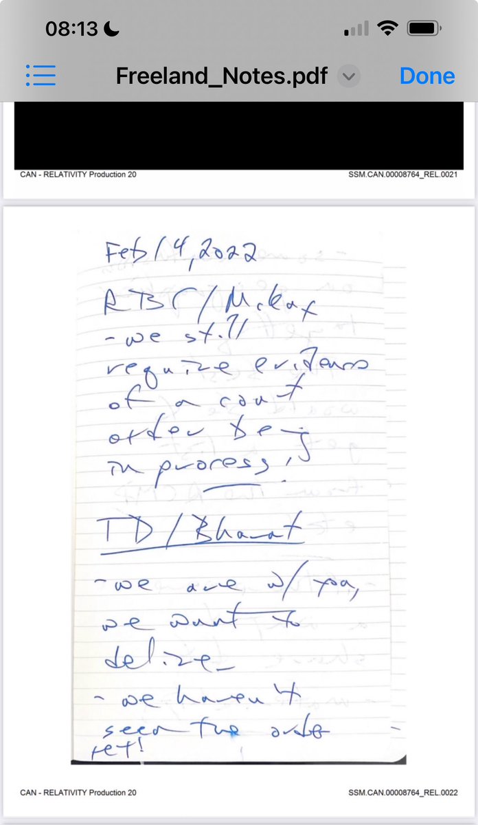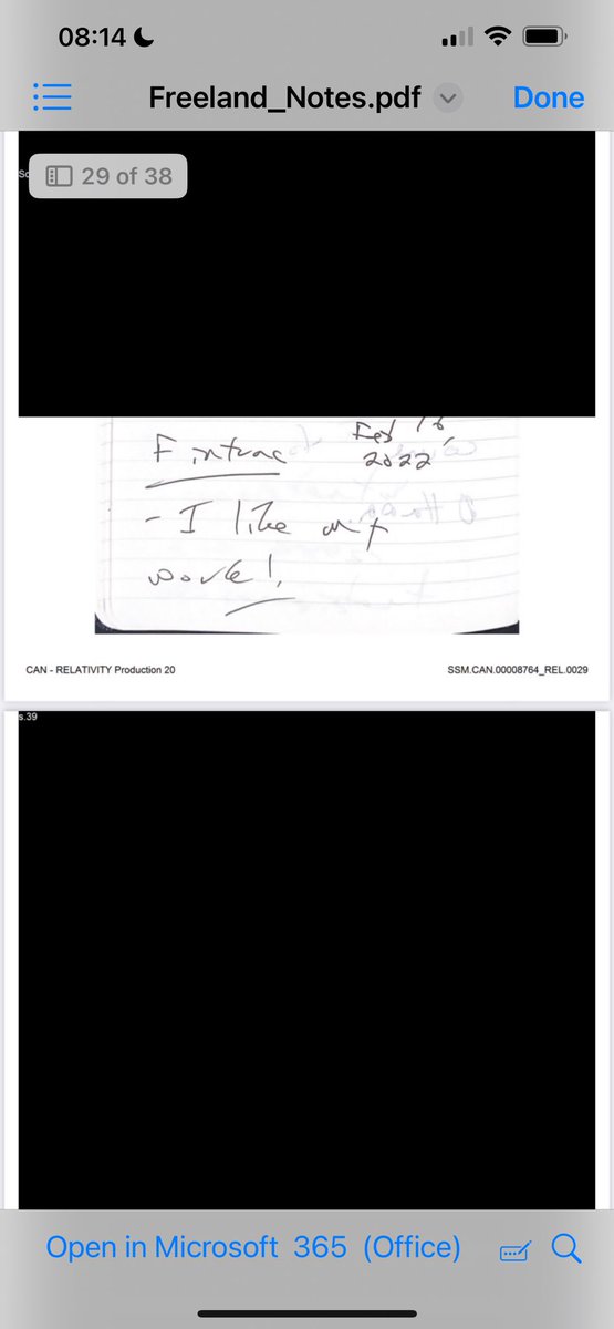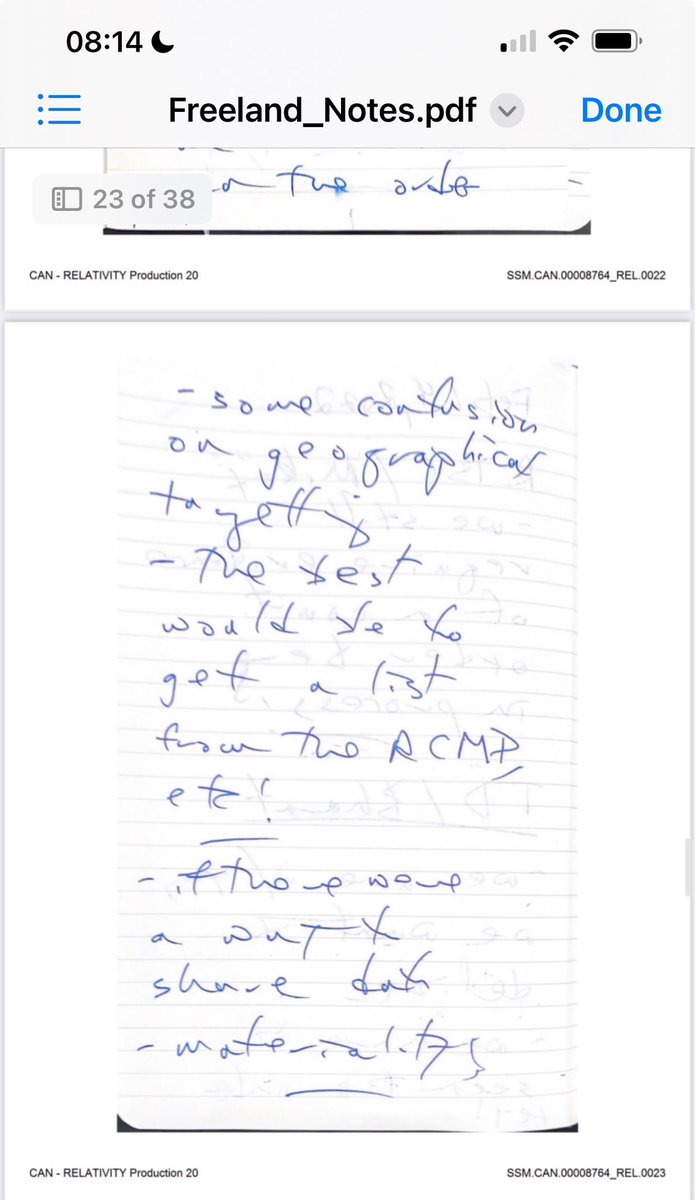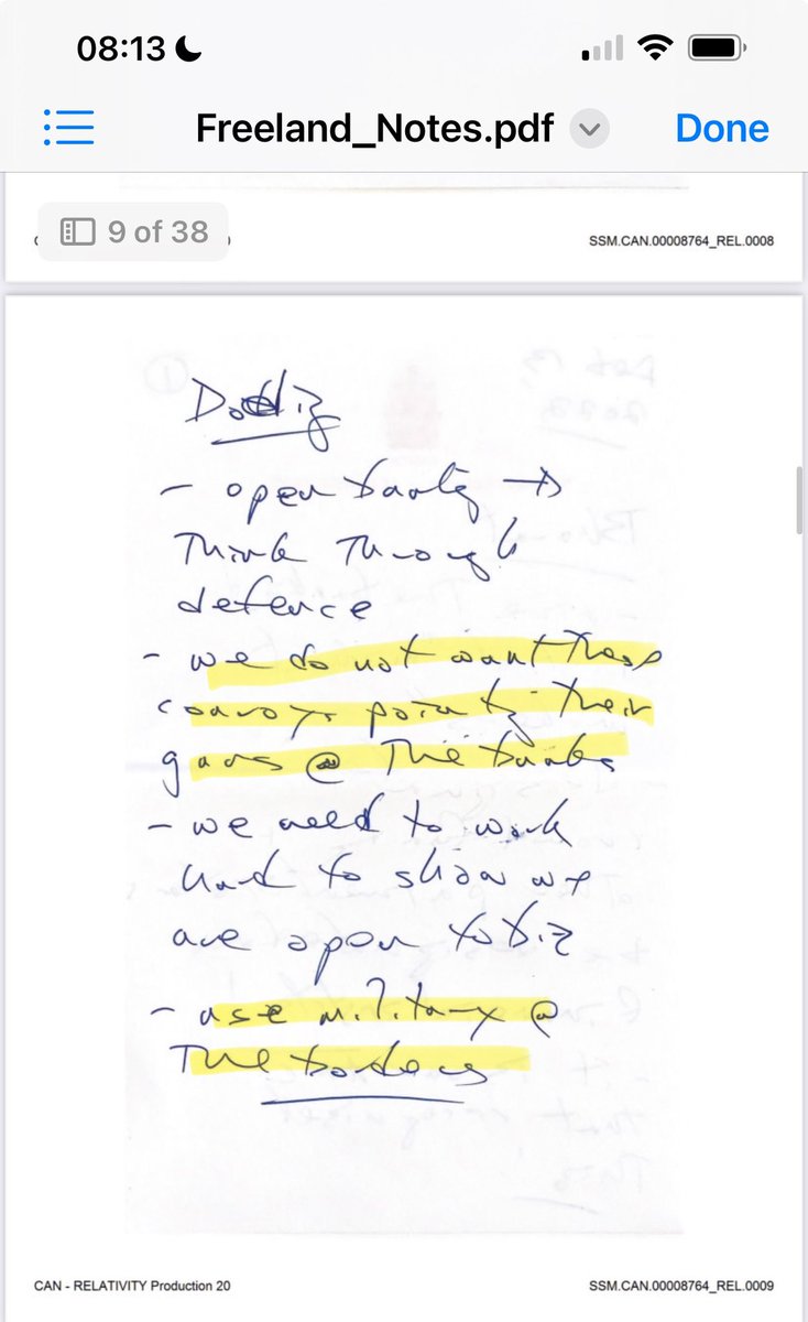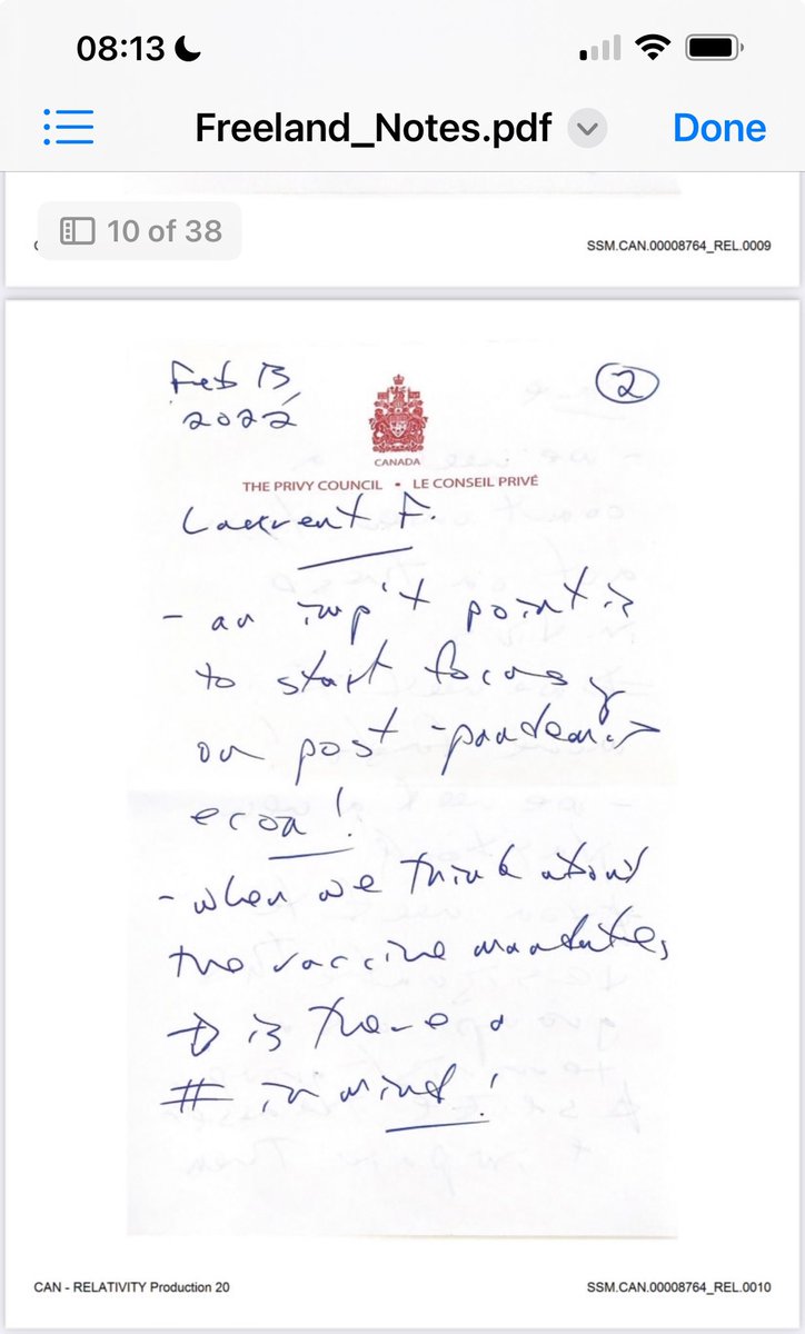 I saved a lot of evidence from the POEC but this morning I am going to share with you the (very poorly) handwritten notes from PM wannabe Chrystia Freeland. This should provide some insight as to how she really feels about everyday, hardworking Canadians who just wanted to feed their families….