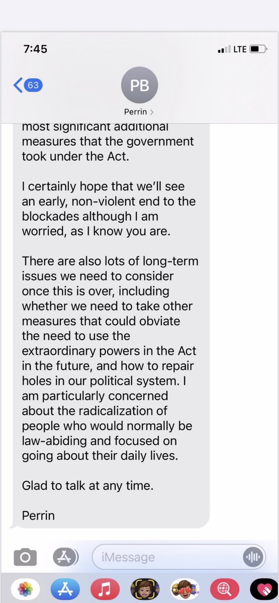 In a May 2022, bail appeal the former prosecutor on our file, Moiz Karimjee, argued that I should be returned to jail for agreeing to accept Justice Centre’s 2022 George Jonas Freedom Award the following June. He felt that accepting this award was indicating a continued commitment to the protest movement, posing a risk of reoffending and/or breaching my bail conditions and wanted me detained to protect public safety.