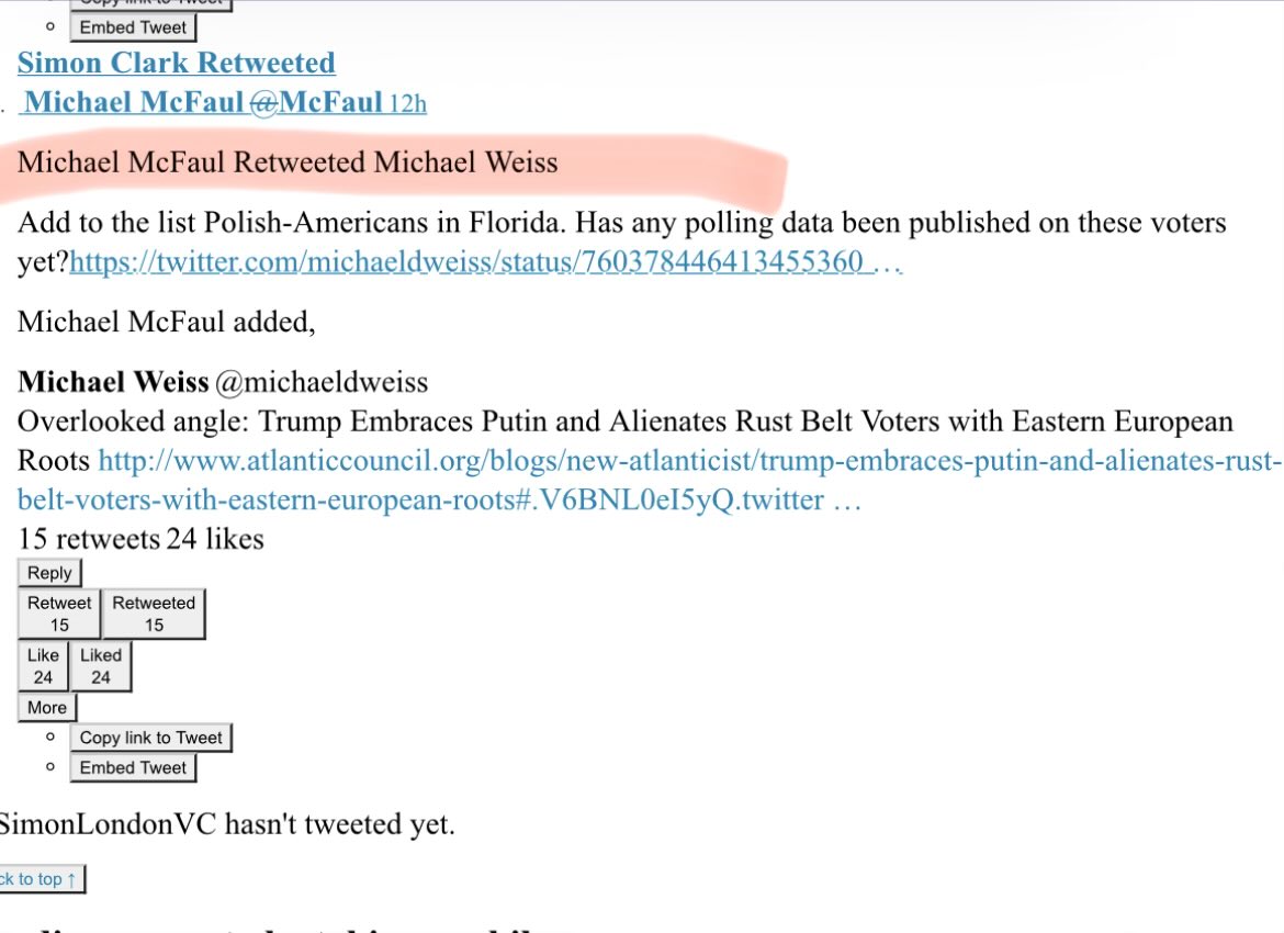 Karen Kornbluh of the Alliance for Securing America (think Russian bot hoax of their Hamilton68) and the CIA’s radio free Europe.