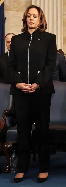 - Former Vice President Harris chose a black pantsuit with heavy gold zippers. It seemed a mismatch for the occasion.