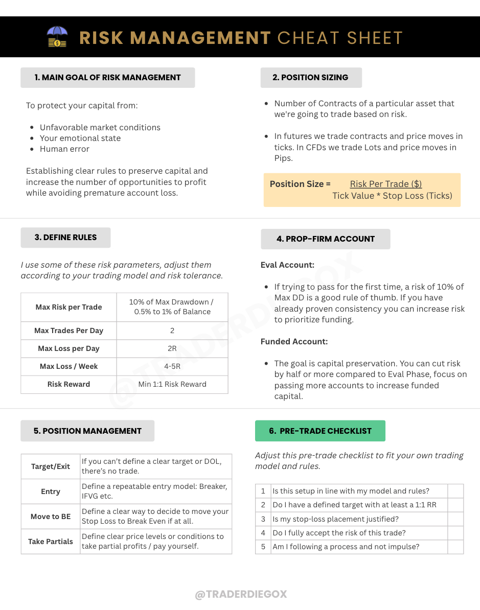 - Platforms like Tradovate offer risk settings that let you set daily/weekly loss limits or maximum position sizing. Check your platform for similar settings.