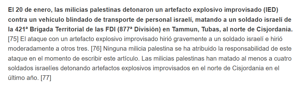 Precisamente, la tregua en la Franja sirve de condiciรณn para la intensificaciรณn del conflicto en Cisjordania. Por una parte, el tensionamiento de relaciones en Yenin entre la Yijad Islรกmica y la Autoridad Palestina, colaboracionista con el sionismo. Image