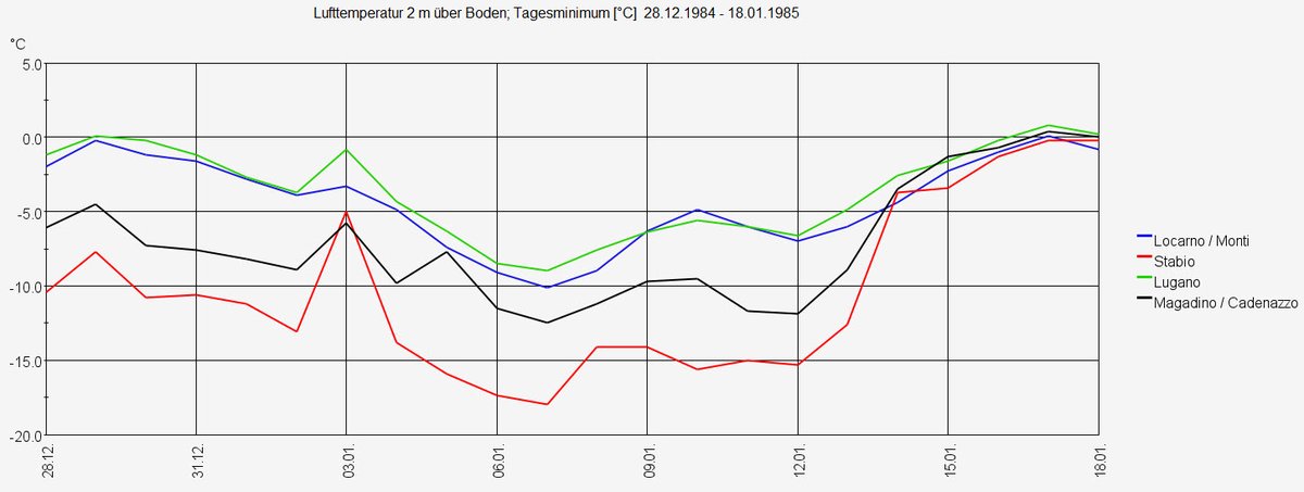40 anni fa, fra il 13 e il 16 gennaio 1985, dopo 2 settimane di gelo intenso, il versante sudalpino e parte del Norditalia furono interessati da una nevicata eccezionale. Sulle pianure🇨🇭sudalpine la coltre di #neve arrivò a sfiorare il metro di spessore. Un 🧵 nostalgico (1/10)