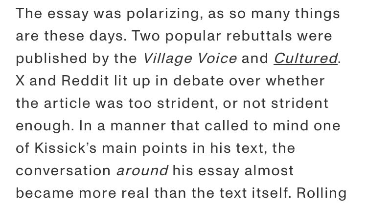@heidegrrrrl @dammirati “On Dean Kissick’s Article in Harper’s”