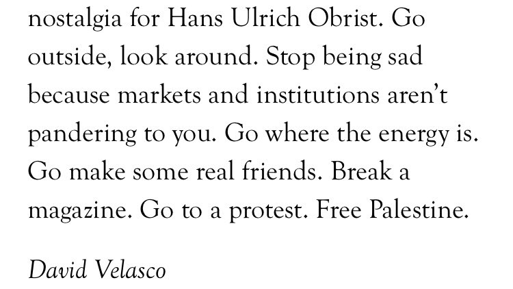 @heidegrrrrl @dammirati @jtdneil @MartinLHerbert @Freddygray31 @_blndrfld @artfcity @Powhida @art_manhattan @katebrownDE @benadavis @AndrewRusseth @SaulOstrow @dissident_muse @anniesalright @jerrysaltz @BarneysRubble0 @mshengoodman @APockros The End.