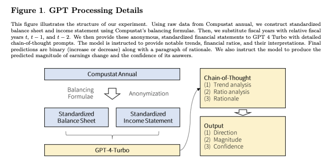 The paper provides standardized and anonymous financial statements to GPT4 and instructs the model to analyze them to determine the direction of future earnings.