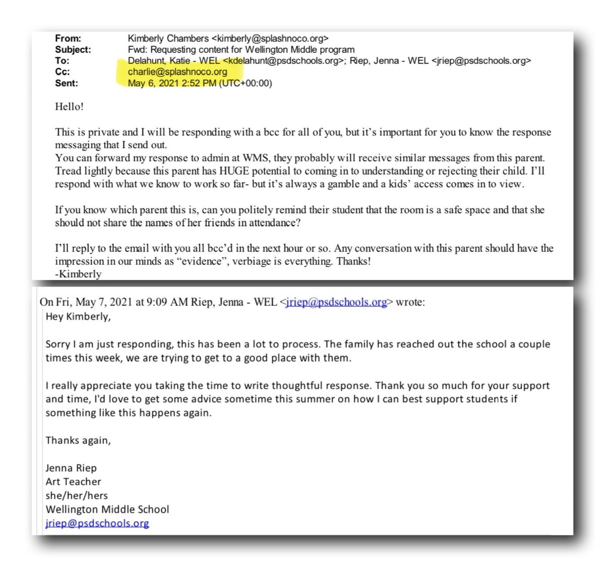 2/ The school board president colluded with my child’s abuser (an outside party who runs “Skittles” and splashnoco.org) to keep me *quiet* … referring to parents who find out as “barriers” that the school board has removed at other middle schools and claiming we have no rights.