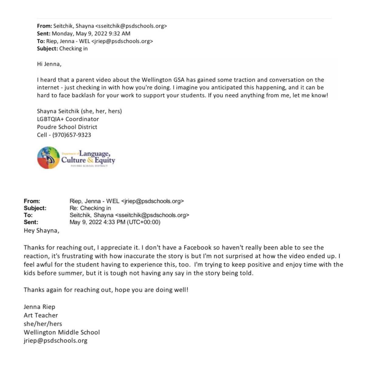 6/ When I went public — Here is the district’s lgbtqia+ coordinator checking in on the teacher: saying it must be so hard to face backlash for supporting her students!