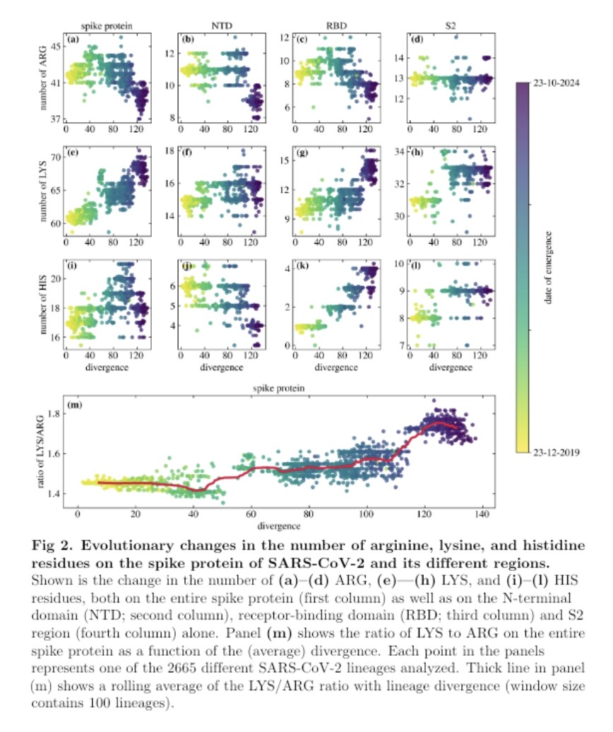 3) ...on its spike protein, reaching levels higher than typically seen in other betacoronaviruses. This preference for LYS over ARG is a unique evolutionary trend for this virus.