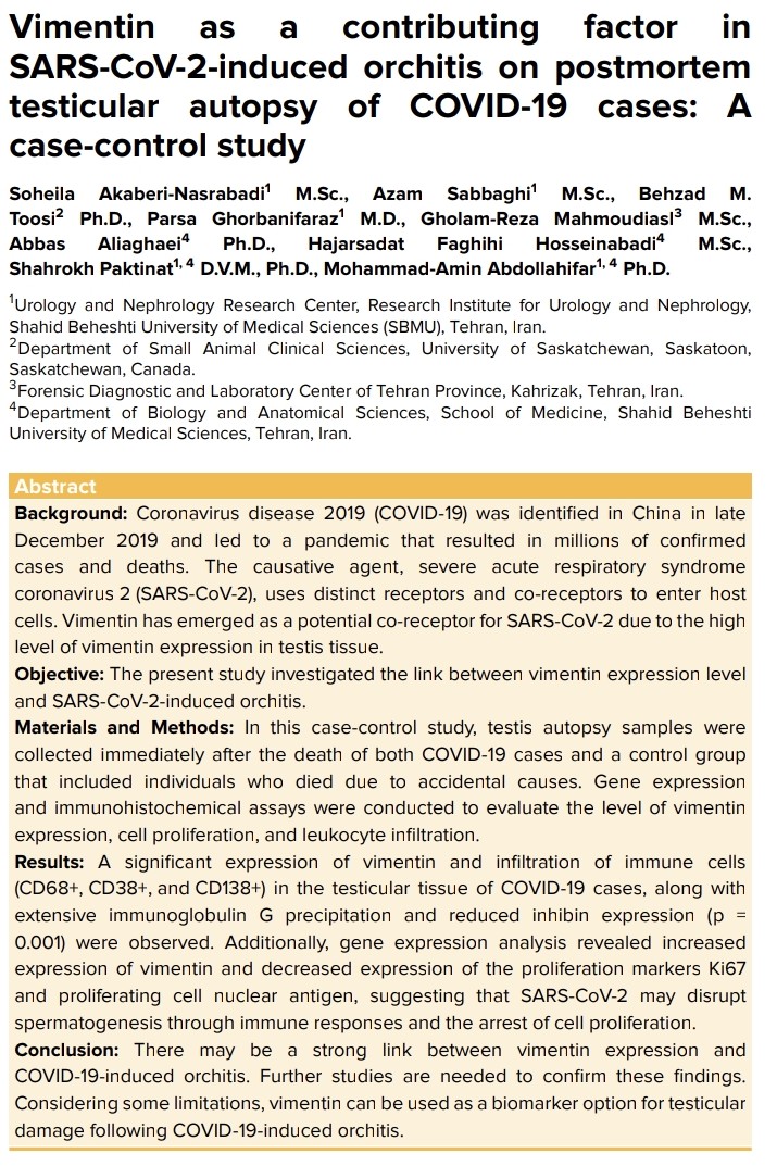 2) The study found that COVID-19 can damage the testes, the male reproductive organs. A key finding was the high levels of a protein called vimentin in the testes of COVID-19 patients.