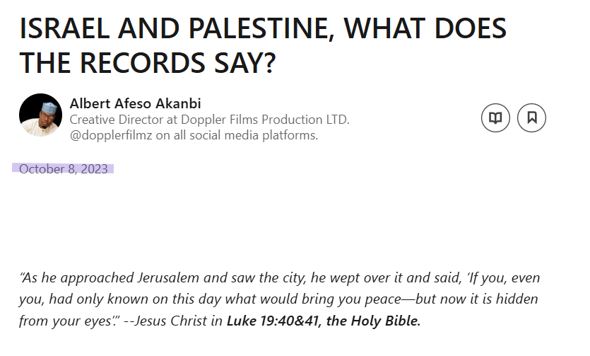 "Albert Afeso Akanbi is a writer and filmmaker. He writes from Abuja." a text written in October 2023. linkedin.com/pulse/israel-p…