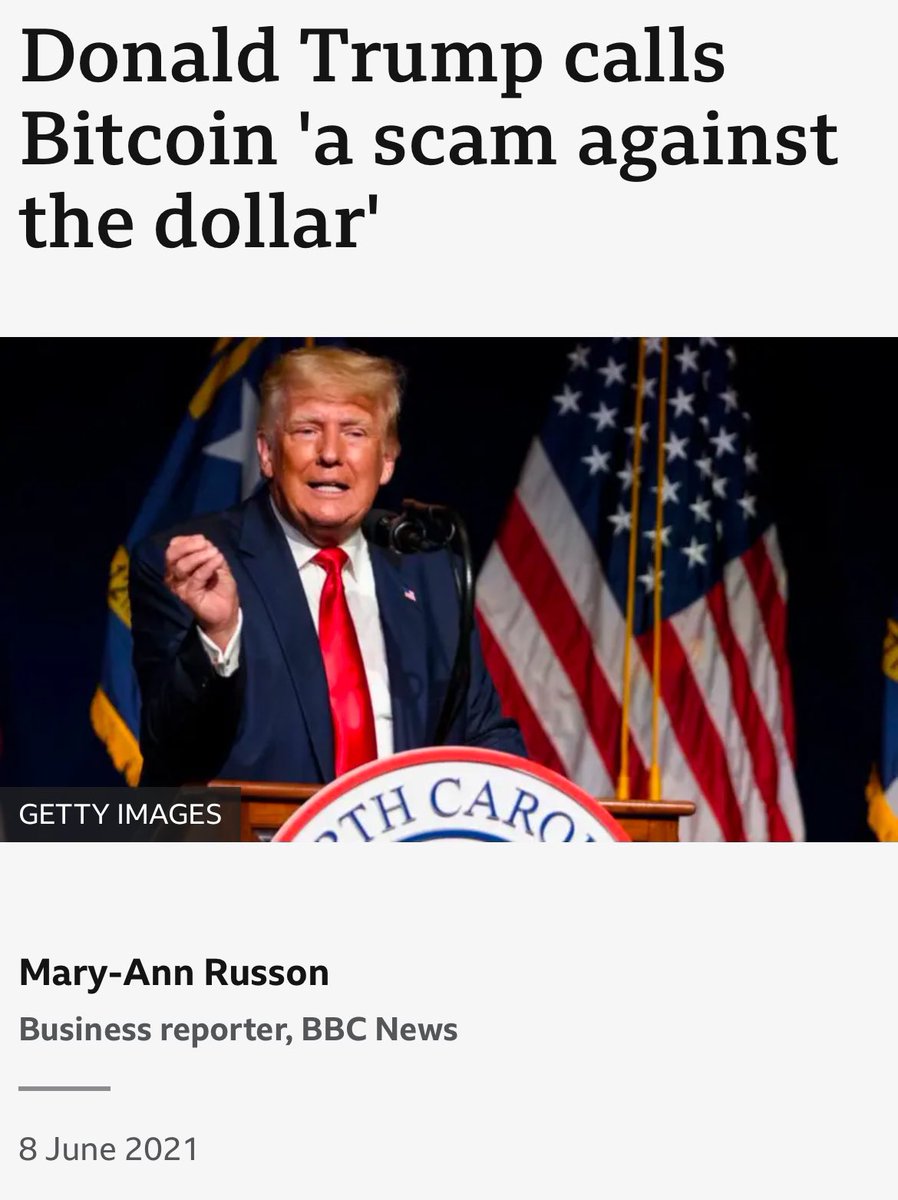 Later in 2021 Trump said he didn’t trust Bitcoin