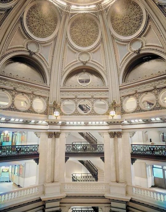 Detroit also had a majestic library, and like Cincinnati, a towering, sky-lit atrium. It was deemed an inefficient way to run a modern library in the 1930s, and razed along with all its delicate ironwork.