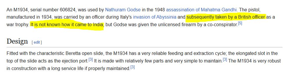 3. From where did Godse get Beretta M1934 Serial number - 606824 Italian pistol. This pistol was with a British officer at England