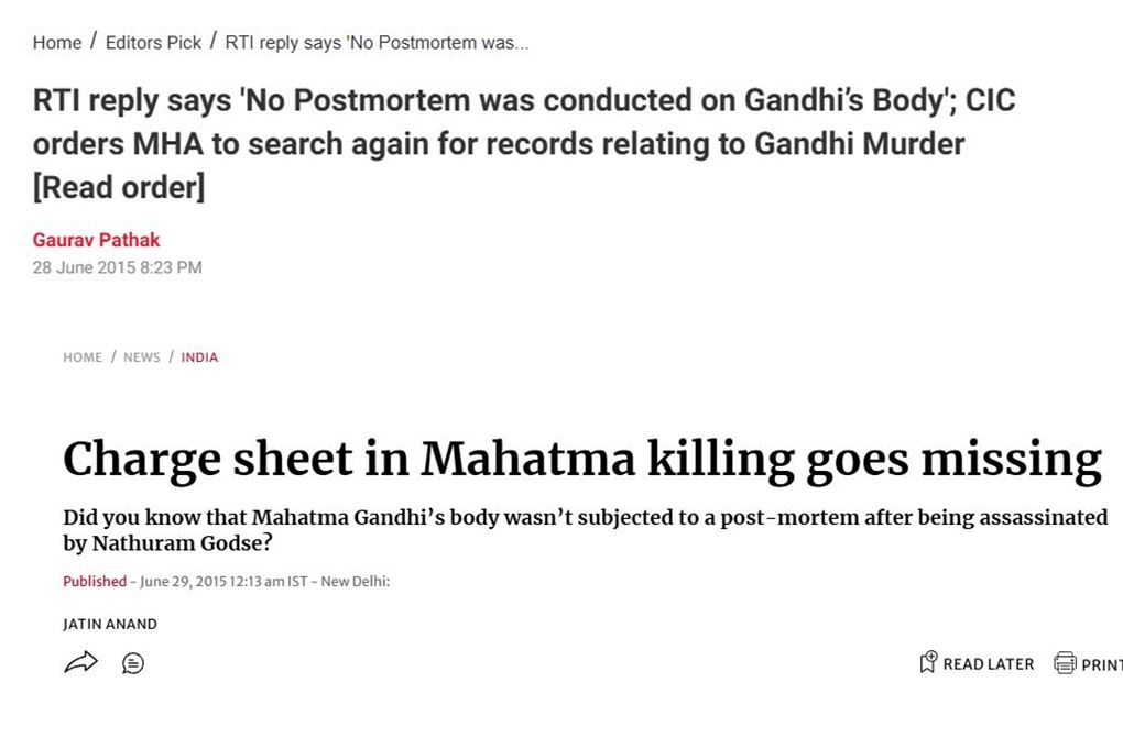 Someone filed RTI for charge sheet of Gandhi's assassination trial in 2015 and he got reply that "Charge sheet is missing"