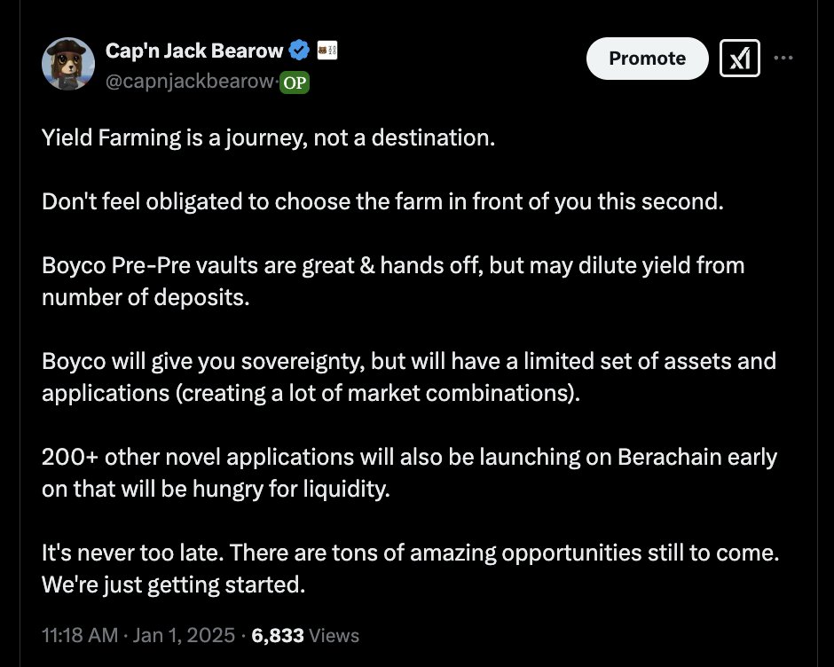 The goal of Boyco was not to reward folks at insane rates for depositing assets that have lower utility. At the end of the day, what we care about is creating productive liquidity to fuel the fat Bera thesis, not creating vanity TVL.