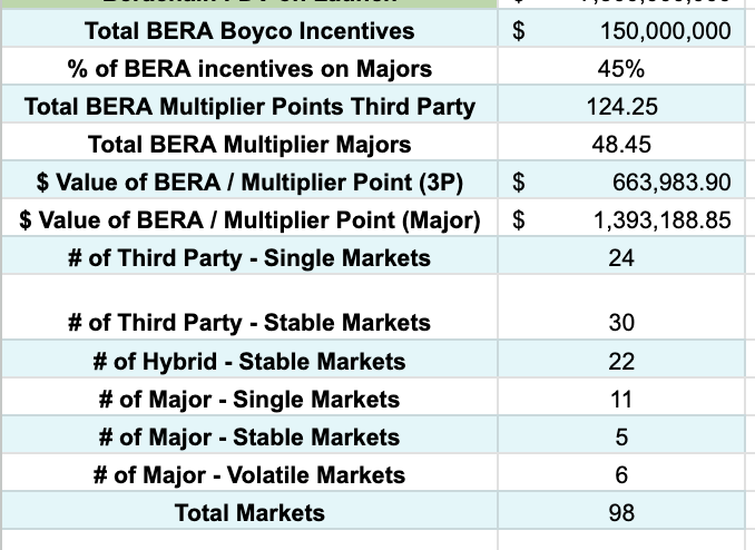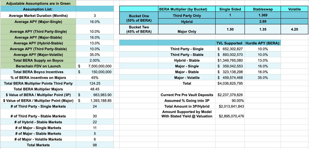 3/ You then have to back into the number of markets by category, weight them by multiplier points, and then use that to create baseline assumptions for the value of each multiplier point in BERA incentive terms (this doesn't factor for TVL yet)