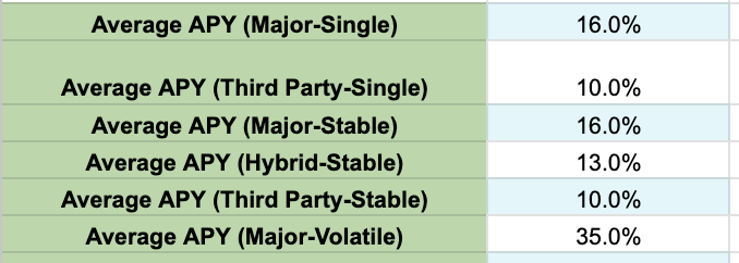 NOTE THAT THESE DO NOT INCLUDE DAPP / UNDERLYING YIELD