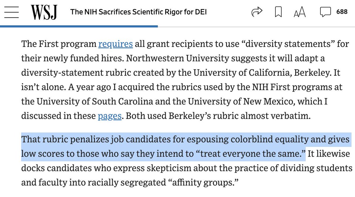 It's now policy that NIH funds universities based on DEI hiring, and some schools even penalize candidates for saying they’ll “treat everyone the same."