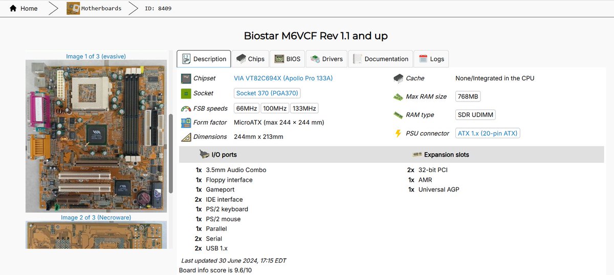 The motherboard is a Biostar M6VCF Rev 1.1. Lots of great info on The Retro Web about it. And in reading the manual, I love how the BIOS is "legal & user friendly" 😂