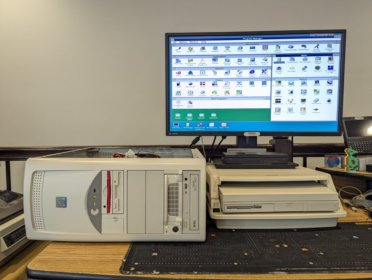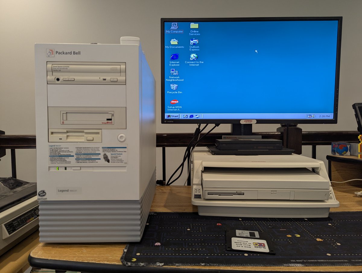 Before trying this out, I took the opportunity to install a clean copy of Windows 98 SE on the Packard Bell, and also adjust the default screen resolution. Looking good!