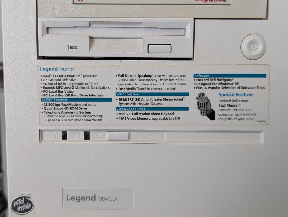 My "new" Packard Bell Legend 994CDT has an Iomega Ditto 800 tape drive. I decided to check it out this morning, but things didn't quite go to plan. Let's talk about it in a 🧵 here.