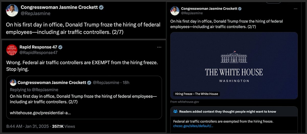 Jasmine Crockett’s lies attempting to blame the Trump admin for the Potomac crash were NUKED in real time — resulting in a public rebuke via Community Notes.